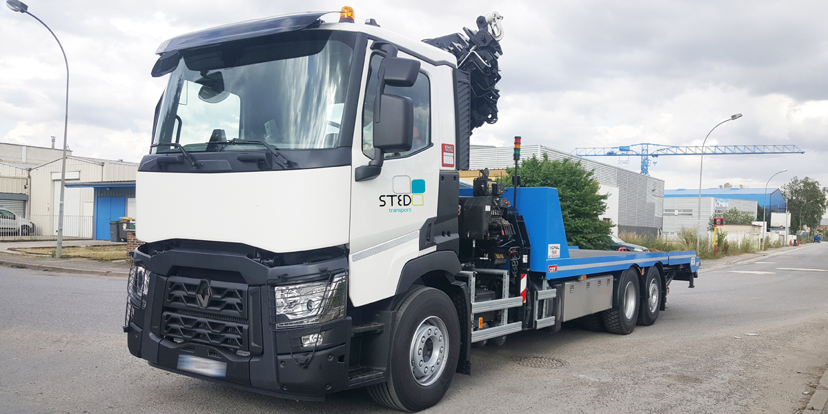 STED Transport vous propose 2 types de véhicules lourds : Porteur Renault équipé d’une grue de 42T NOUVEAU Porteur Renault équipé d’une grue de 55T NOUVEAU Porteur Renault porte-engins équipé d’une grue de 21T Porteur Mercedes porte-engins équipé d’une grue de 26T